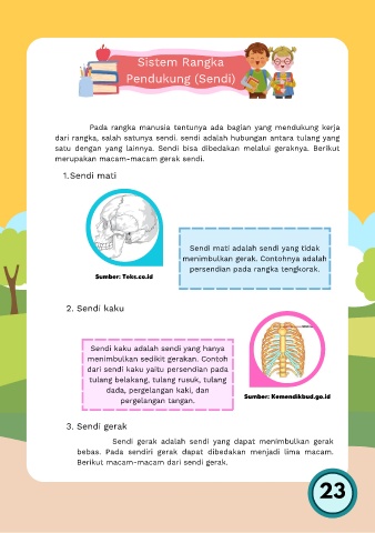 satu dengan yang lainnya. Sendi bisa dibedakan melalui geraknya. Berikut