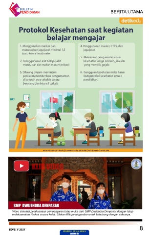 Video simulasi pelaksanaan pembelajaran tatap muka oleh SMP Dwijendra Denpasar dengan tetap
