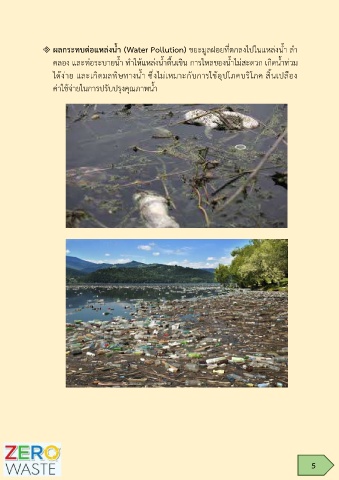 ⎆ ผลกระทบต่อแหล่งน้ำ (Water Pollution) ขยะมูลฝอยที่ตกลงไปในแหล่งน้ำ ลำ