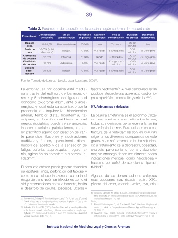 Tabla 2. Parámetros de absorción de la cocaína según su forma de presentación