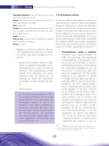 Tasca: estar bajo los efectos producidos por el con- El examen clínico a la persona comienza a
