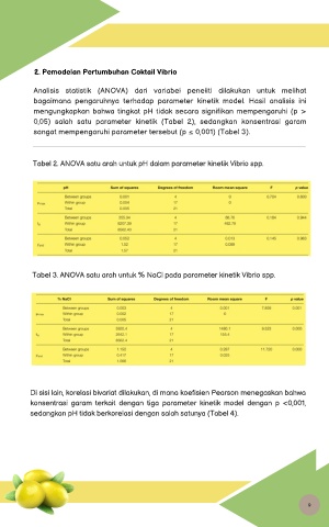 Tabel 2. ANOVA satu arah untuk pH dalam parameter kinetik Vibrio spp.