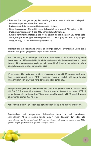 Pada garam 4%, pertumbuhan Vibrio dipengaruhi pada pH 9,0, karena kemiringan