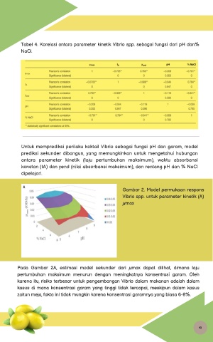 Tabel 4. Korelasi antara parameter kinetik Vibrio spp. sebagai fungsi dari pH dan%
