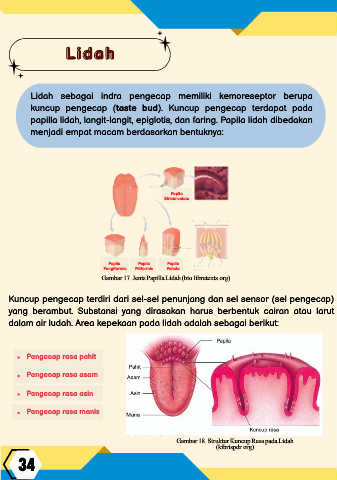 Lidah sebagai indra pengecap memiliki kemoreseptor berupa