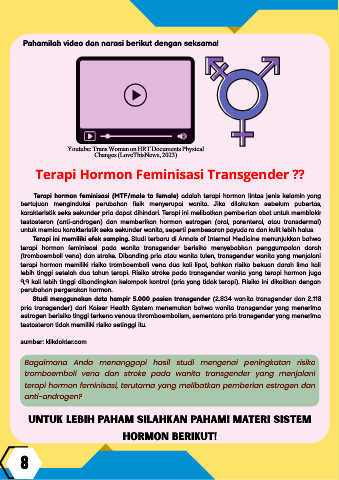 (tromboemboli vena) dan stroke. Dibanding pria atau wanita tulen, transgender wanita yang menjalani