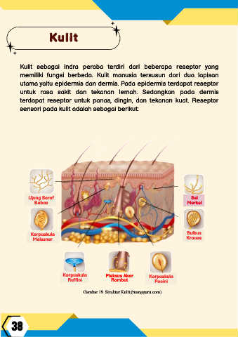 Kulit sebagai indra peraba terdiri dari beberapa reseptor yang