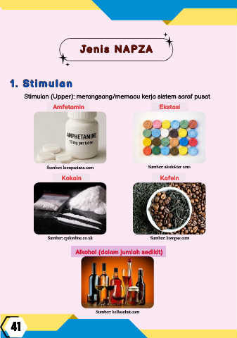 Stimulan (Upper): merangsang/memacu kerja sistem saraf pusat