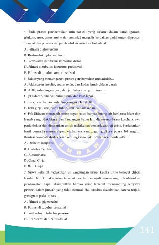4. Pada proses pembentukan urin zat-zat yang terlarut dalam darah (garam,