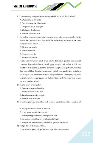 7. Hormon yang mengatur keseimbangan kalsium dalam darah adalah...