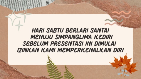 Hari sabtu berlari santai Menuju simpanglima kediri Sebelum presentasi ini dimulai Izinkan kami memperkenalkan diri