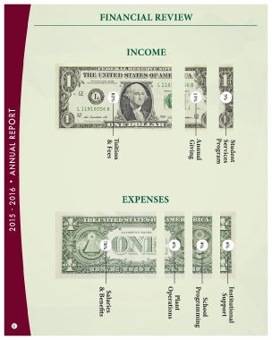 Student 6% Institutional 5% Services Support Program Annual 9% School Giving Programming 13% FINANCIAL REVIEW INCOME 6% Plant EXPENSESOperations 82% 12TuitionSalaries & Fees & Benefits 78% 2015 - 2016 • ANNUAL REPORT