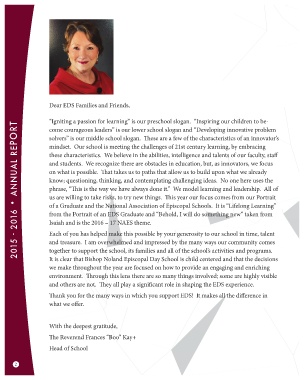 2015 - 2016 • ANNUAL REPORT Dear EDS Families and Friends,