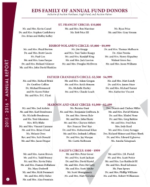 Mr. and Mrs. Kevin Camel ST. FRANCIS’ CIRCLE: $10,000 Mr. Ryan Price