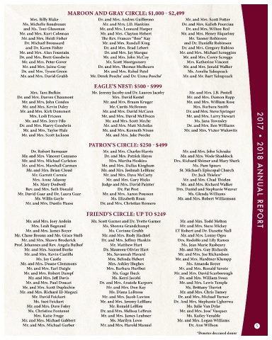 and Dr. Karen Fisher Dr. and Mrs. Brad Lebert Dr. and Mrs. Gregory Rubino