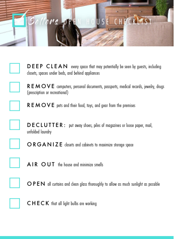 R E M O V E pets and their food, toys, and gear from the premises DECLUTTER: put away shoes, piles of magazines or loose paper, mail,