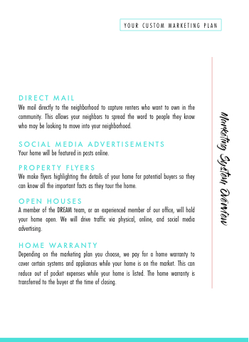 We make flyers highlighting the details of your home for potential buyers so they can know all the important facts as they tour the home.