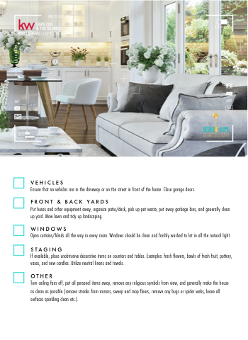 Turn ceiling fans off, put all personal items away, remove any religious symbols from view, and generally make the house as clean as possible (remove streaks from mirrors, sweep and mop floors, remove any bugs or spider webs, leave all surfaces sparkling clean etc.).