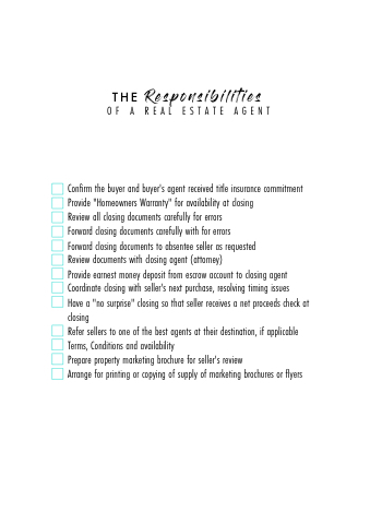 Confirm the buyer and buyer's agent received title insurance commitment Provide "Homeowners Warranty" for availability at closing