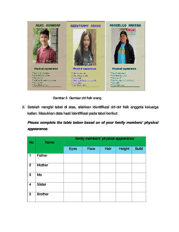 2. Setelah mengisi tabel di atas, silahkan identifikasi ciri-ciri fisik anggota keluarga