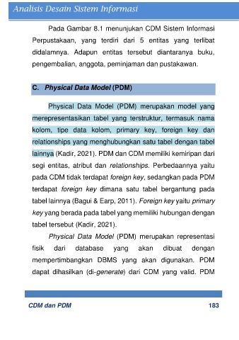 pada CDM tidak terdapat foreign key, sedangkan pada PDM
