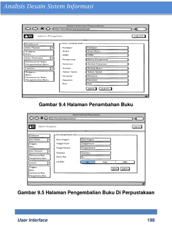 Analisis Desain Sistem Informasi Gambar 9.4 Halaman Penambahan Buku Gambar 9.5 Halaman Pengembalian Buku Di Perpustakaan User Interface 198