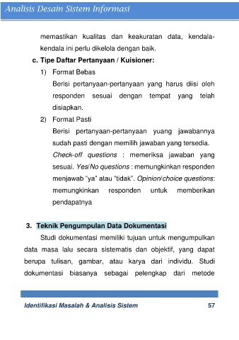 c. Tipe Daftar Pertanyaan / Kuisioner: