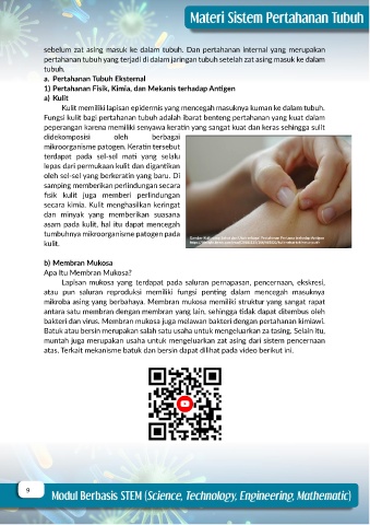 Kulit memiliki lapisan epidermis yang mencegah masuknya kuman ke dalam tubuh.