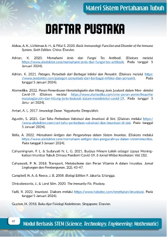 Abbas, A. K., Lichtman A. H., & Pillai S. 2020. Basic Immunologi: Function and Disorder of the Immune