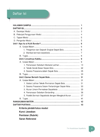 tutor pendidikan kesetaraan. Modul pendidikan kesetaraan disediakan mulai paket A tingkat kompetensi Unit 3 Gemar Berlatih Sepak Bola ........................................................ 31