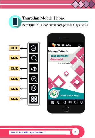 Tampilan Mobile Phone Petunjuk: Klik icon untuk mengetahui fungsi tools KLIK KLIK KLIK KLIK KLIK KLIK ii Untuk Siswa SMP IT/MTS Kelas IX 7 ii