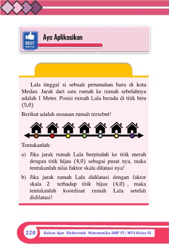b) Jika jarak rumah Lala didilatasi dengan faktor