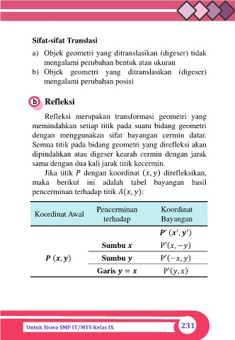 Refleksi merupakan transformasi geometri yang