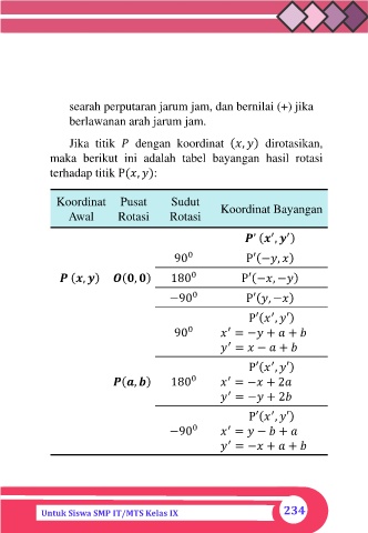 maka berikut ini adalah tabel bayangan hasil rotasi