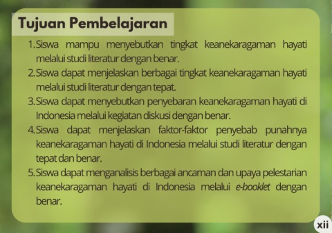 2. Siswa dapat menjelaskan berbagai tingkat keanekaragaman hayati