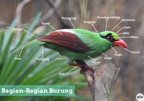 Punggung Penutup telinga Mahkota Sayap Tengkuk Dahi Tunggir Alis Mata Paruh Dagu Ekor Tungging @Andrew Owen Dada Perut Kaki Bagian-Bagian Burung xiv