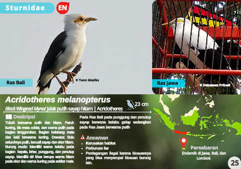 bagian kepala, leher, punggung, dan penutup Perdagangan ilegal karena kicauannya Endemik di Jawa, Bali, dan