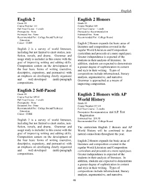 fiction, novels, and drama. Grammar and The curriculum English 2 Honors and AP
