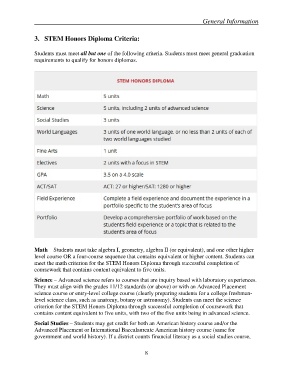 criterion for the STEM Honors Diploma through successful completion of coursework that