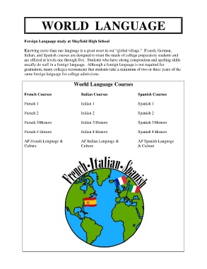Italian, and Spanish courses are designed to meet the needs of college preparatory students and