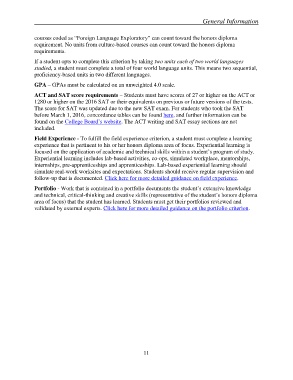 experience that is pertinent to his or her honors diploma area of focus. Experiential learning is