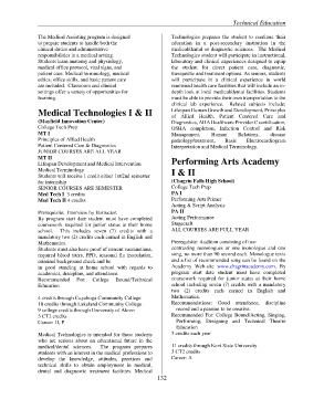 responsibilities in a medical setting. Technologies student will participate in instructional,