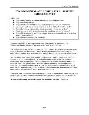 Environmental and Agricultural Systems Career Cluster described below.
