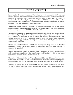 transcripted college and high school credit upon successful completion of the course. These credits
