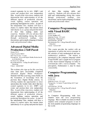 create and produce their own independent Recommended For: College Bound/Technical