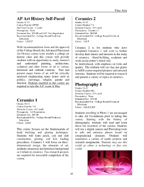 of the College Board, the Advanced Placement completed Ceramics 1 and wish to further