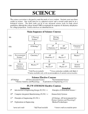 for college preparation. Science electives are identified below.