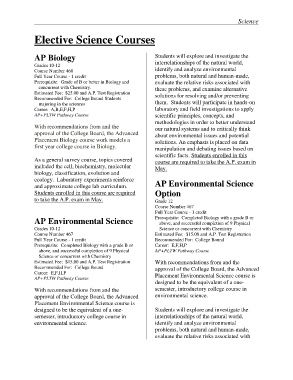 AP Environmental Science Prerequisite: Completed Biology with a grade B or