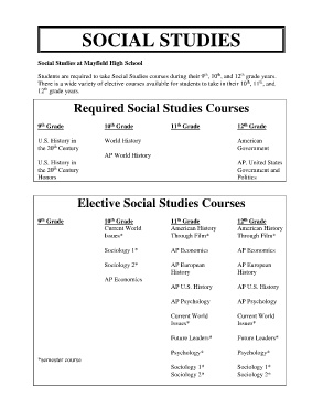 Students are required to take Social Studies courses during their 9 , 10 , and 12 grade years.