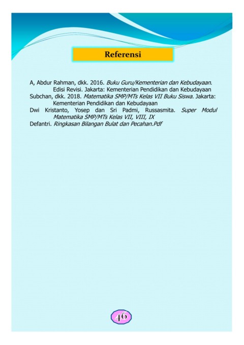 Subchan, dkk. 2018. Matematika SMP/MTs Kelas VII Buku Siswa. Jakarta: